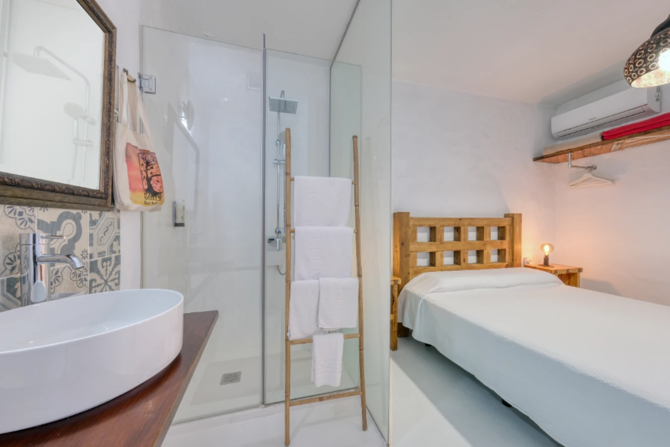 This room has an integrated bathroom, separated only by a frosted glass wall. While all rooms include a shower and toilet, this layout may not be suitable for guests seeking greater privacy. If this is a concern, please consider booking a different room.