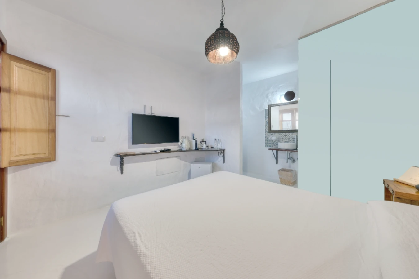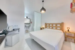 A bright and compact room filled with morning light – ideal for guests who spend their days exploring Lanzarote and value a simple, peaceful place to return to.