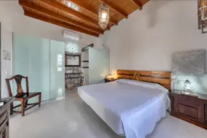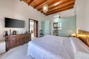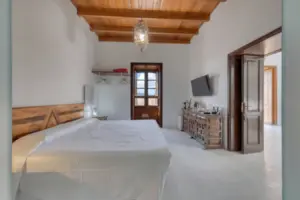 Accessed through the internal courtyard and opening towards the ocean and Lanzarote’s volcanic landscape, the Tarde Superior Room combines authentic character with understated comfort. Natural tones and carefully selected details create a warm, relaxed atmosphere, reflecting the island’s artistic and architectural heritage.